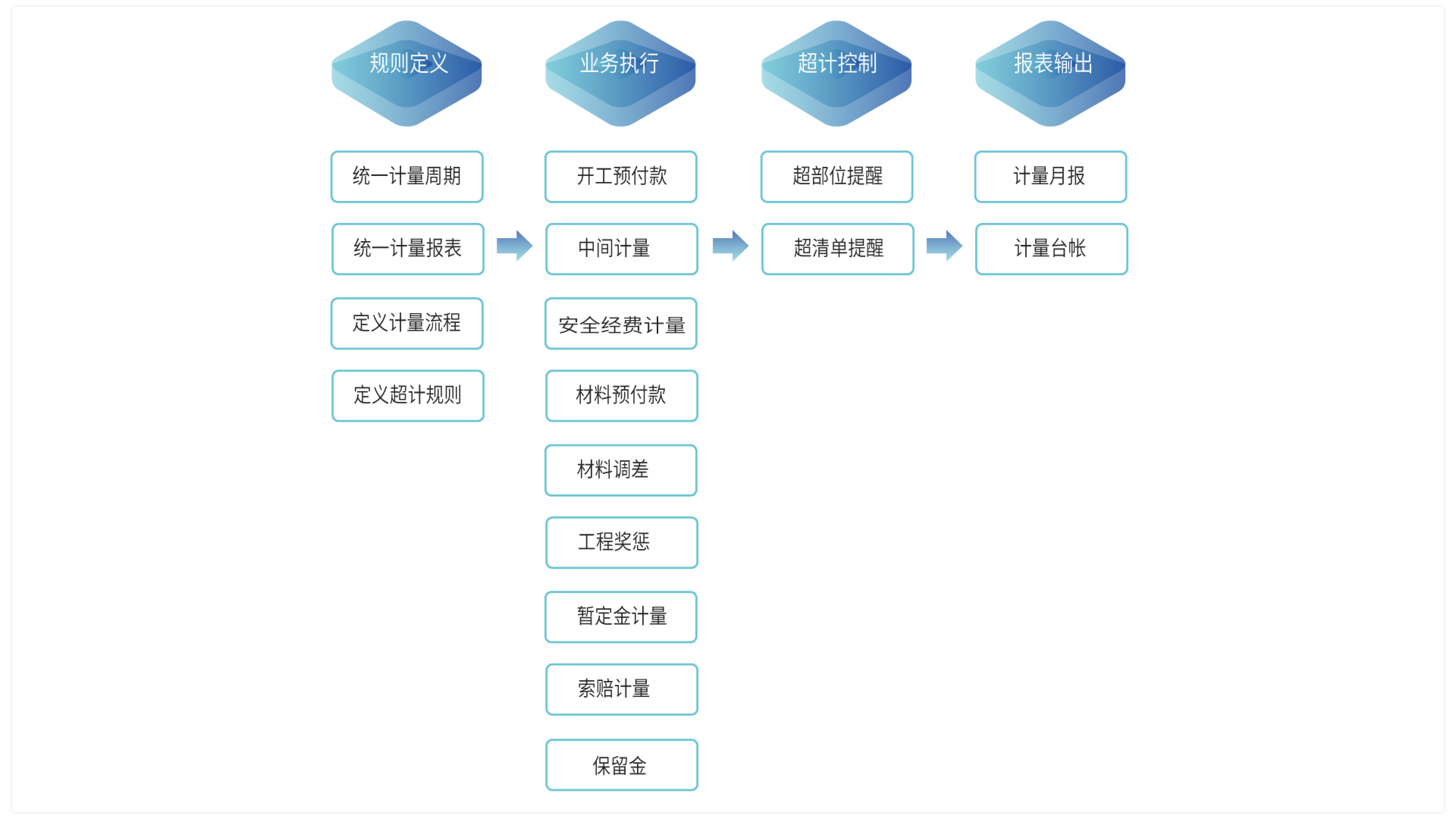 工程計(jì)量多方協(xié)調(diào),流程規(guī)范,程序合規(guī),適用多種承發(fā)包模式下的多種計(jì)量方式,計(jì)量支付全過程實(shí)時(shí)監(jiān)控,動(dòng)態(tài)透明,程